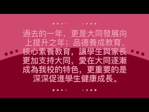 🐮【金牛年賀歲-開運拜年篇】🐮各位老師、同學與家長們:大同致力於教育的深化發展、落實素養教育,進一步規範辦學,既是學校管理的常規工作。因此在全校師生的共同努力下,認真打造無私的教育愛學習環境,藉以提升教學品質為主軸、實行核心素養為理念、建構校園安全環境為基礎,期許校內各項教務,欣欣向榮。過去的一年,大同也是一個成果豐碩的一年。校舍工程建設驗收、校園環境的改善、智慧教室的設計,教學環境的提升,加強學生學習能力,伴隨著的是廣大家長對學校工作的支持與信任。這一年我們看到的是全體教師求實敬業、踏實教學,立足課堂,務求發展的碩果;我們看到的是學校推動學生行為規範系列教育活動效果顯著,使學生遵規守紀,且更加文明、活潑、健康、快樂!良好學習環境的養成教育與培養,在全體教師和家長們努力不懈下,結出累累碩果!新的一年,大同的工作重心將進一步加強學生養成教育、德育教育,進而達到良好學風校風,全面提升學生學習力與競爭力!在此向全體師生的努力致以最誠摯地謝意,謝謝大家,祝各位新年快樂,牛轉乾坤行大運!